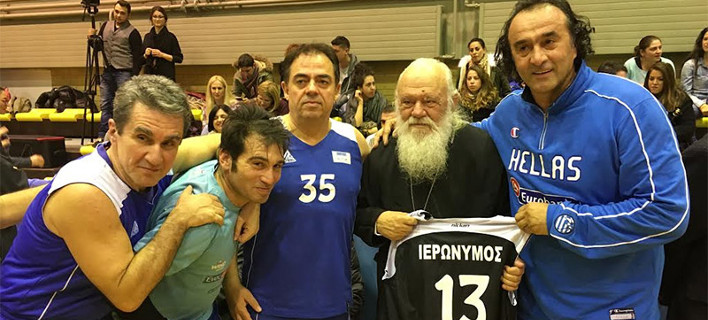 Στο τέλος των αγώνων οι διοργανωτές απένειμαν στον Αρχιεπίσκοπο Ιερώνυμο τη φανέλα με τον Νο 13.