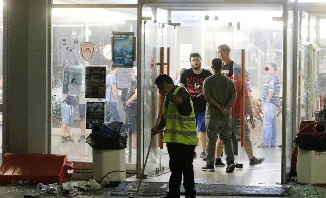 Πέραν του καμμένου βαν, η ενημέρωση της αστυνομίας κάνει λόγο και για φωτιά σε κάδους έξω από τα αποδυτήρια των αθλητών, καθώς και για χούλιγκαν που περιφέρονται εκτός γηπέδου.