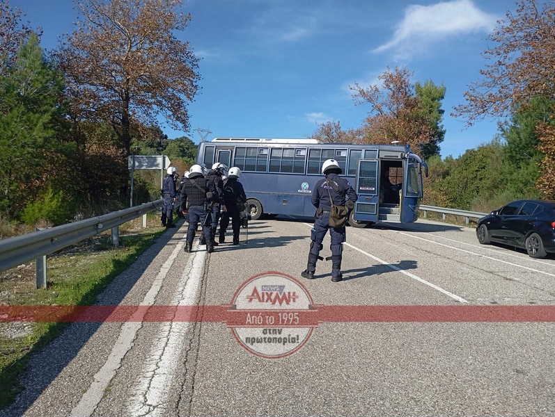 Αυτή τη στιγμή τα λεωφορεία της αστυνομίας έχουν κόψει τον δρόμο στα Xάνια Γαβρολίμνης, προκειμένου να μην περάσουν οι αγρότες προς την γέφυρα, ενώ υπάρχει ισχυρή αστυνομική δύναμη.